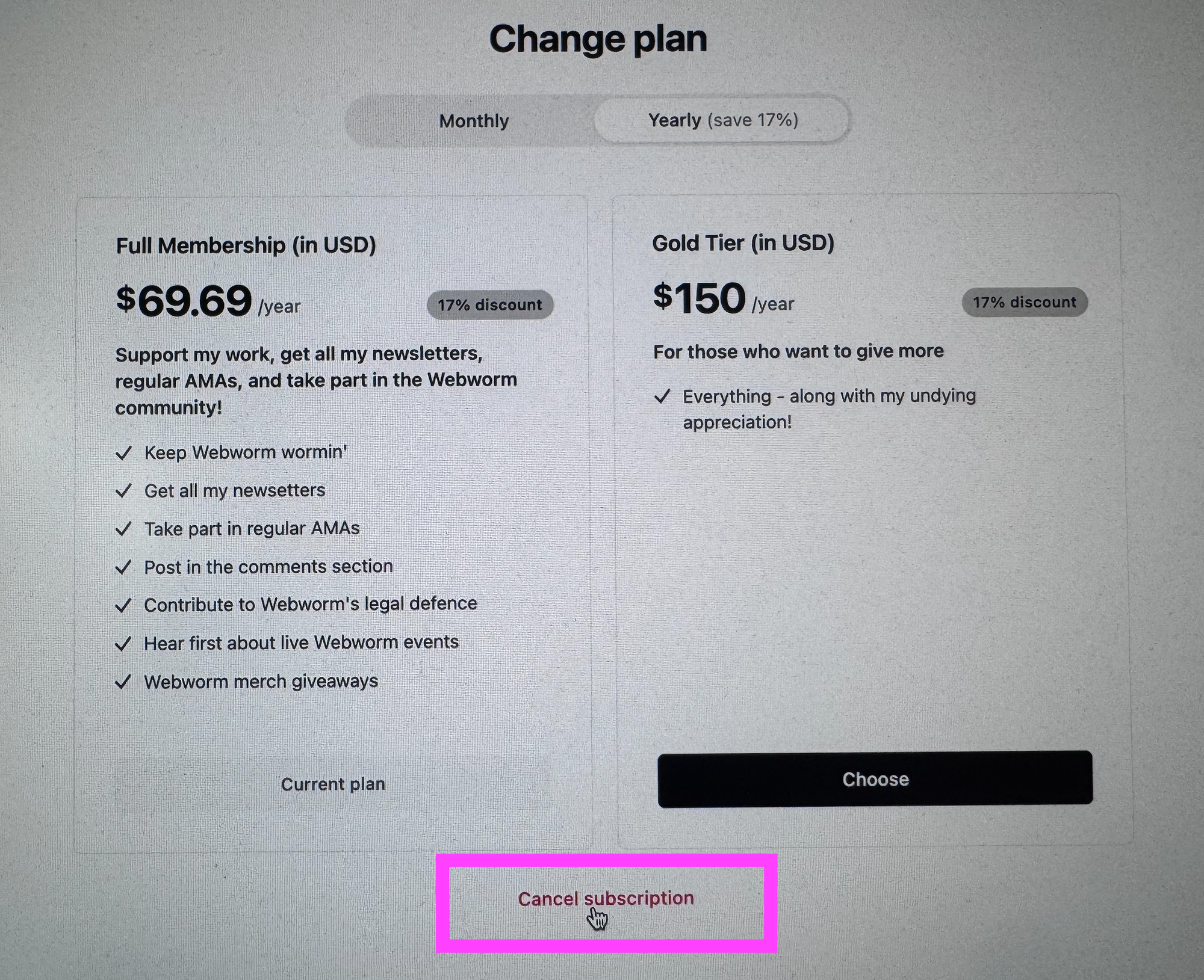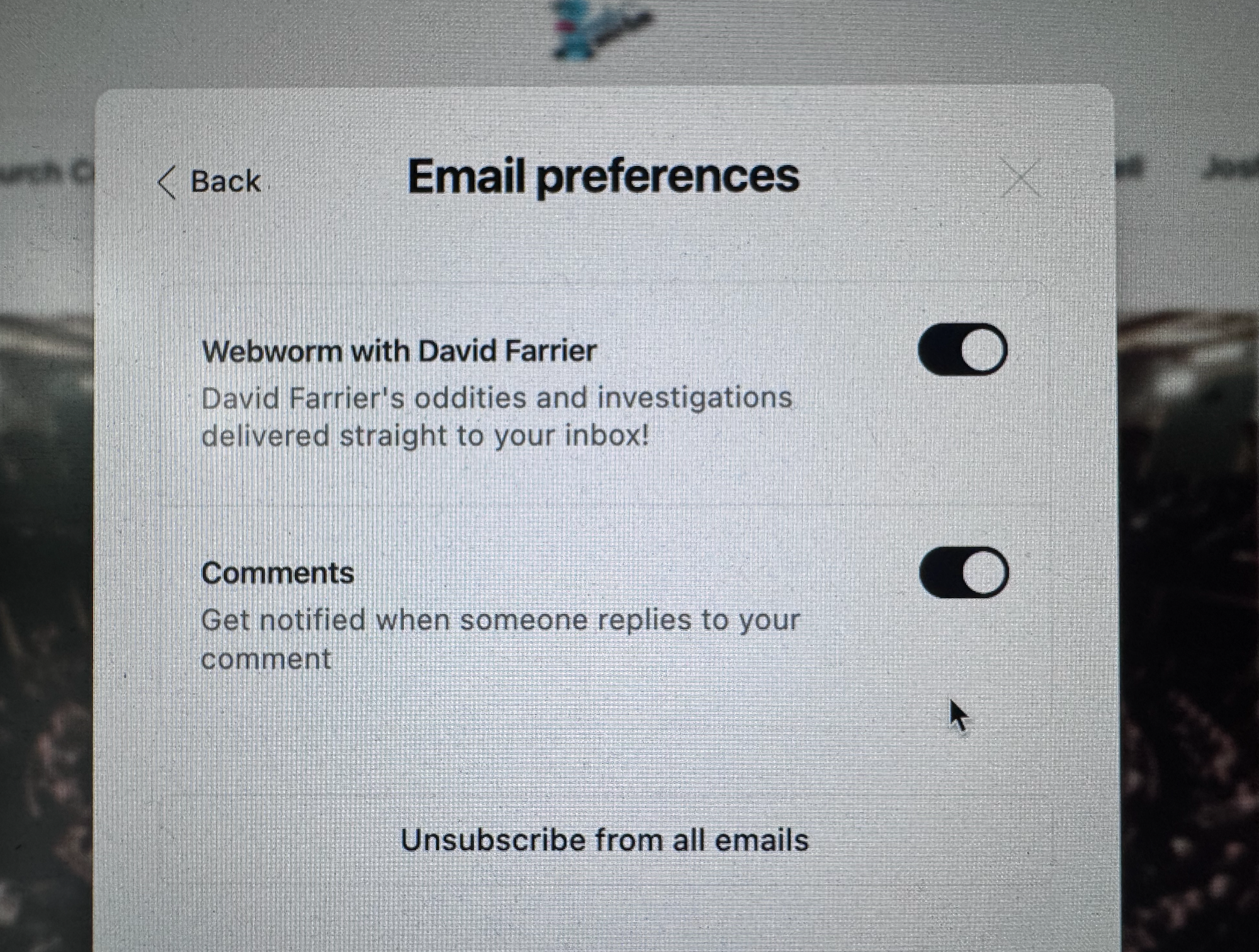 Please note that hitting "unsubscribe from all emails" does not cancel your paying membership – you can still login at webworm.co and access all of Webworm, and get to the comment section.