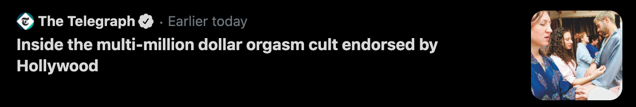You bastards! I was ready for orgasms back in 2020! So: Here’s some of the research and ideas I’d come up with that would fill out each episode. These are the first six episodes. The first episode is “Sex”, where you’ll find the cult of One Taste. I’ll share the rest in the next newsletter. I just need to tidy them up a bit first.