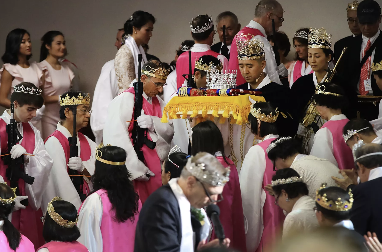 World Peace and Unification Sanctuary: As the debate over gun control raged across America in the wake of a school shooting in Florida, a group of worshippers wearing bullet crowns and toting AR-15 rifles gathered in a Pennsylvania church this week to hold a “commitment ceremony” for about 250 couples.
