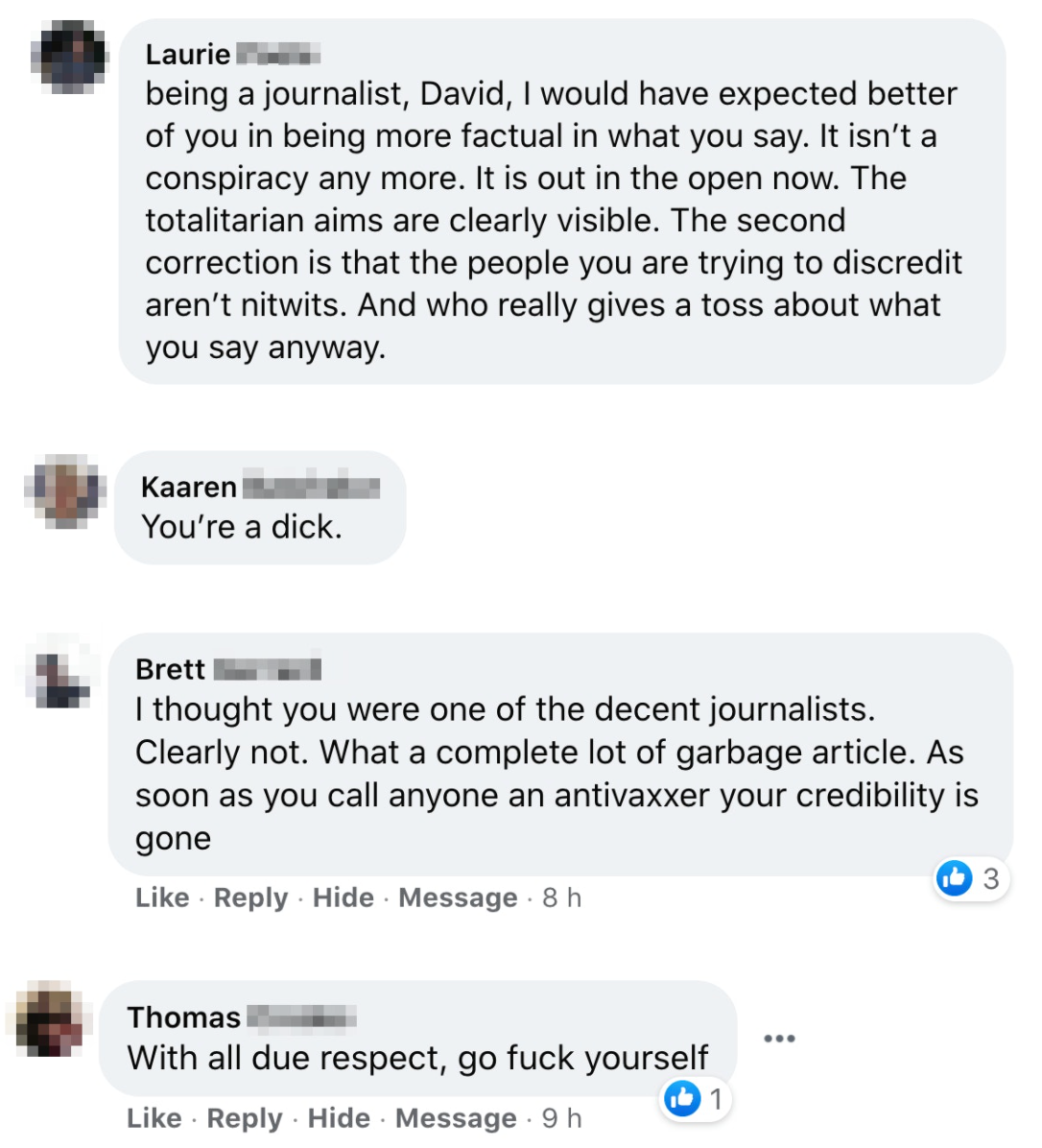 My last newsletter — New Zealand Goes Loopy — was pretty direct and pretty intense. I called a variety of New Zealanders “conspiracy theorists”, “anti-vaxxers” and “nitwits”. But I realise now I rushed in. I wasn’t thinking. I darted over to Facebook, and realised I’d made a huge misstep: