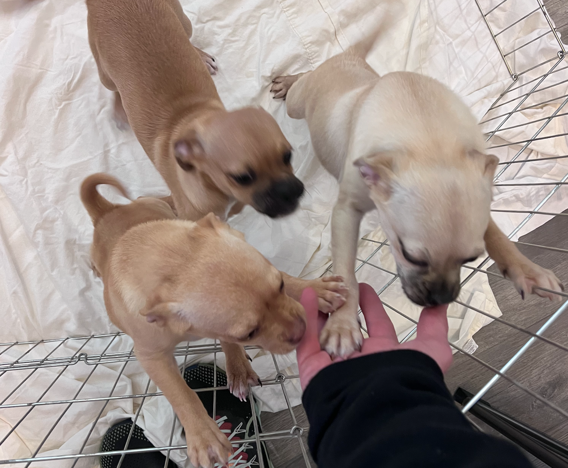 At one point, I stooped down to pet some puppies that were about to be picked up for adoption.