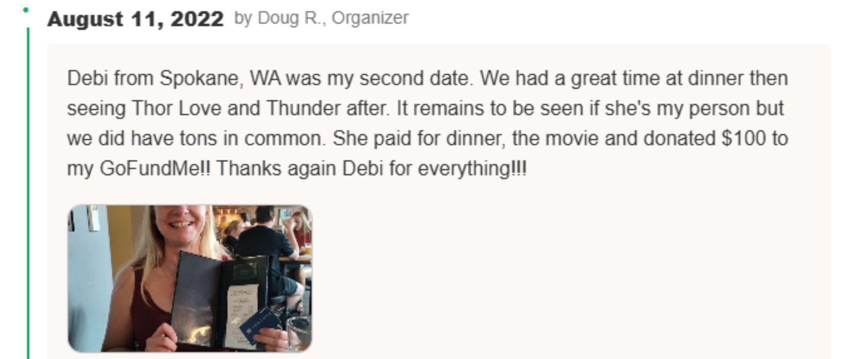 As with all of his ventures, Doug did appear to have some success – a series of women in the now-deleted GoFundMe posing with the cheque.