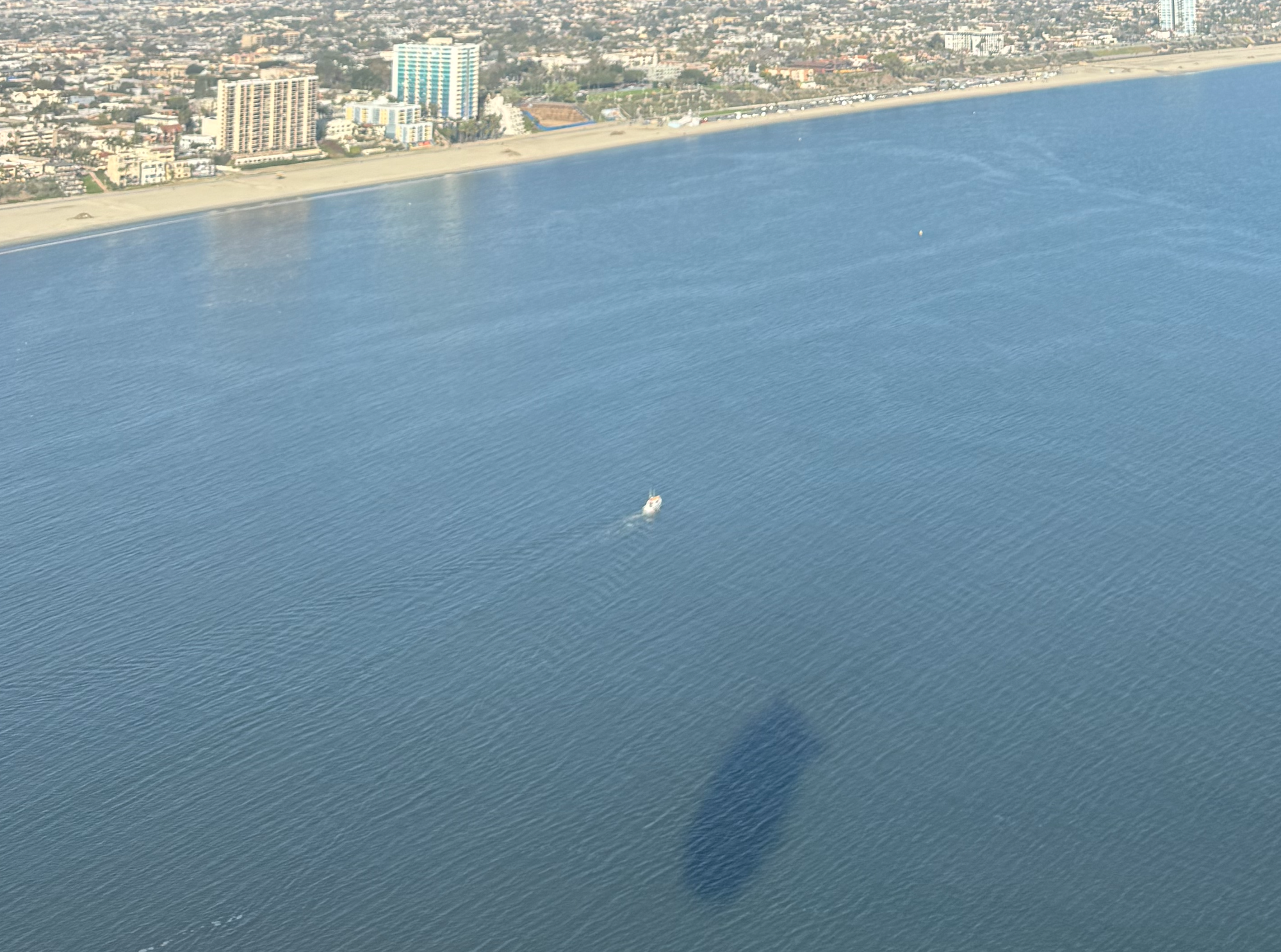 The views of this vast mess of a city — and the ocean out to the west — were spectacular, our shadow a reminder of how unusual this vessel was; a whale drifting through the sky.