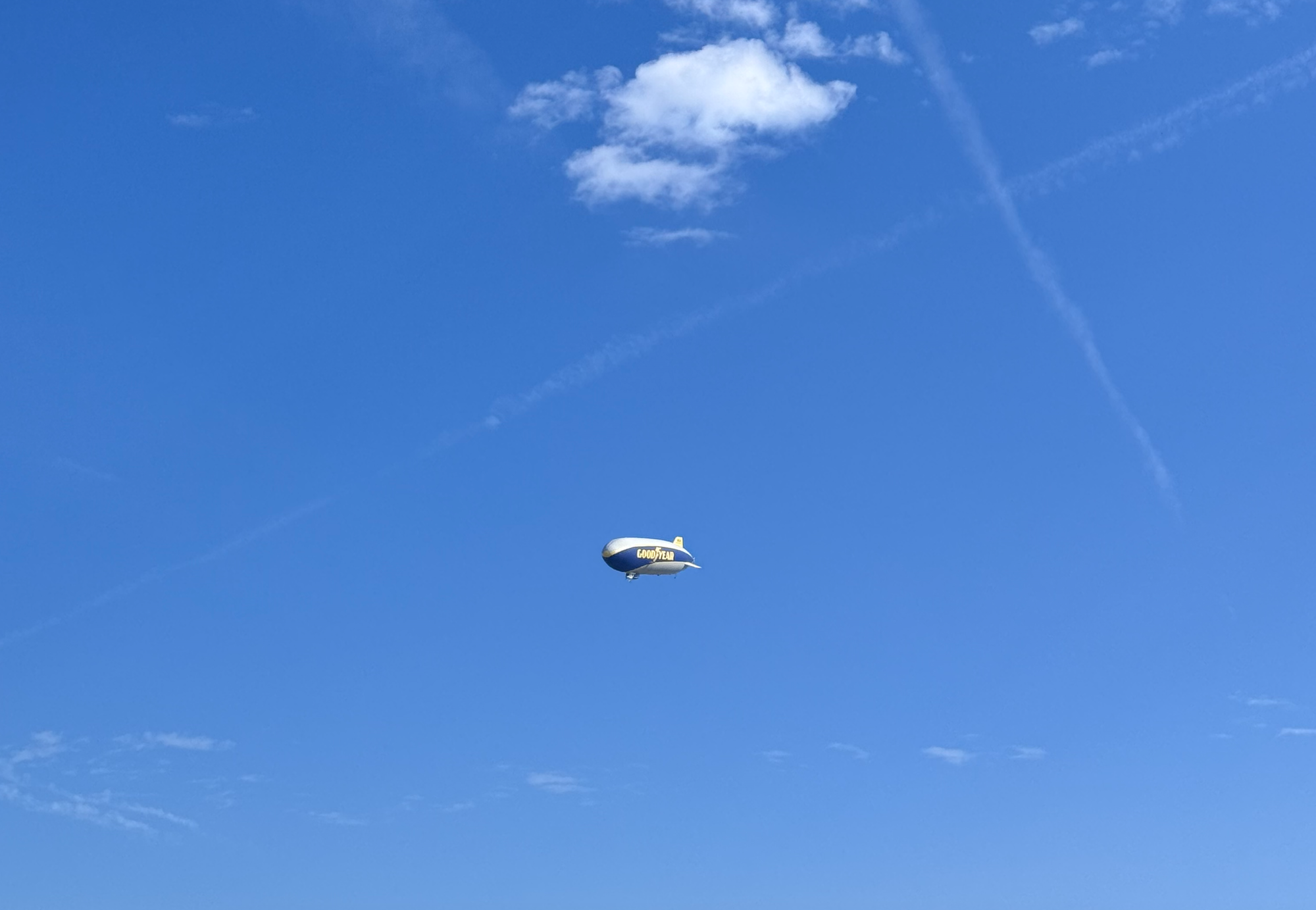 Then I saw that this year marked the 100th anniversary of the Goodyear blimp — and I got an idea. The blimp may have been a terrible idea for public transport, and drones did away with its use in surveillance, but advertising meant that some blimps were still available. Here in America they had the “DirecTV blimp” and the “MetLife blimp” — but there was no denying the Goodyear Blimp reigned supreme. And this year it was having a party.