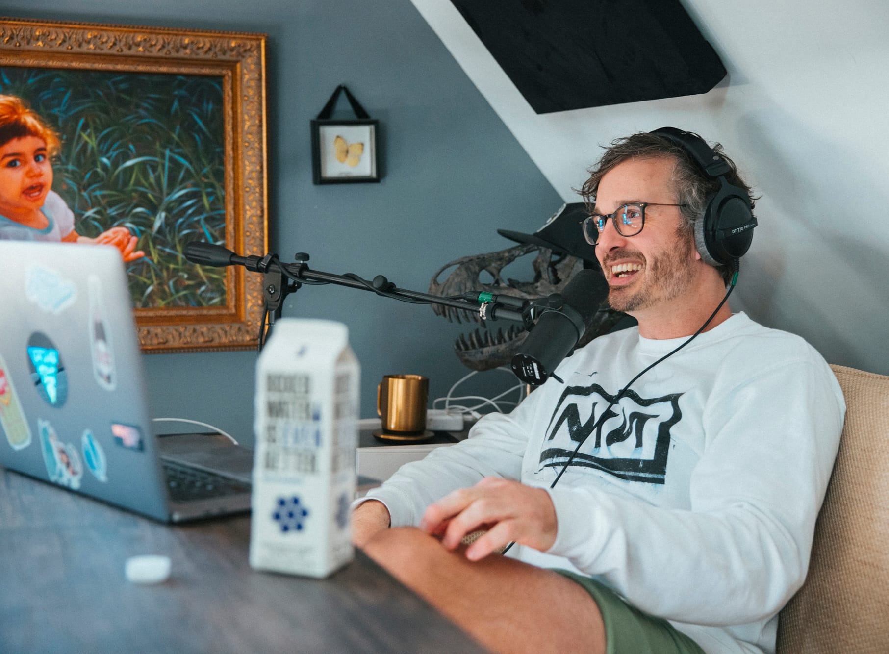 “This starts from David coming up with episode ideas, brainstorming with him, mapping out the upcoming weeks and deciding what to release when to making sure the audio docs are happening, that we’re getting in the attic to record, and ensuring each piece of the post-production puzzle is falling into place.”
