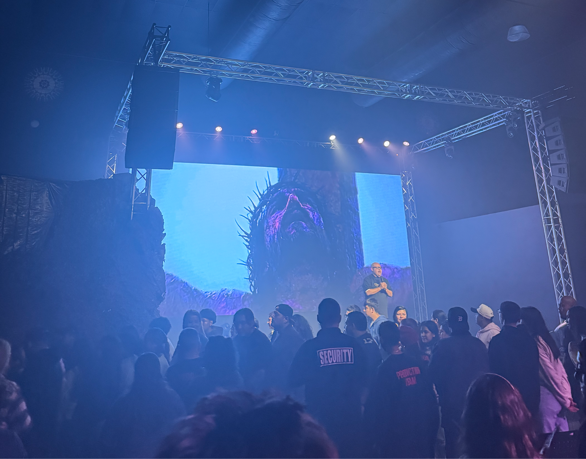 I join a line and head through a metal detector – not particularly unusual for a busy event in Los Angeles. And to be clear: this is busy. There are food trucks and church merch on hand for purchase, and groups of teens and families waiting to get in. I scan my ticket ($17.85) and join a line of about 150 people ready to experience a Hell House.