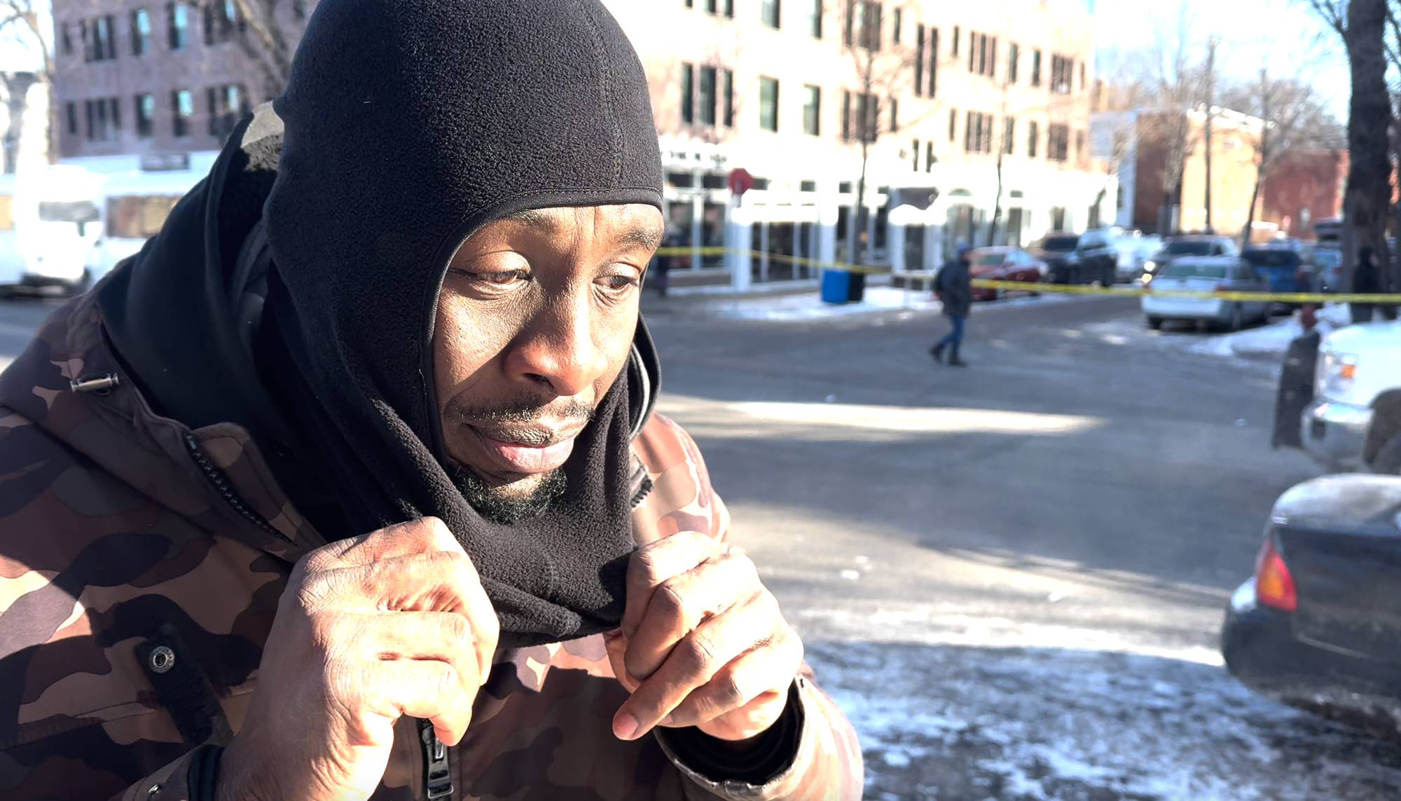 Walking on, a local pulls out his phone. He isn't wearing gloves; he lives nearby. He brings up a video showing ICE agents piling on top of a human just around the corner from where we're standing, near a place near Glam Doll Donuts.