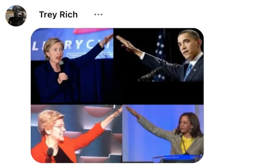 The idea that every Democratic leader in recent memory also loved throwing Hitler salutes spread like wildfire, screenshots from various events used as evidence: