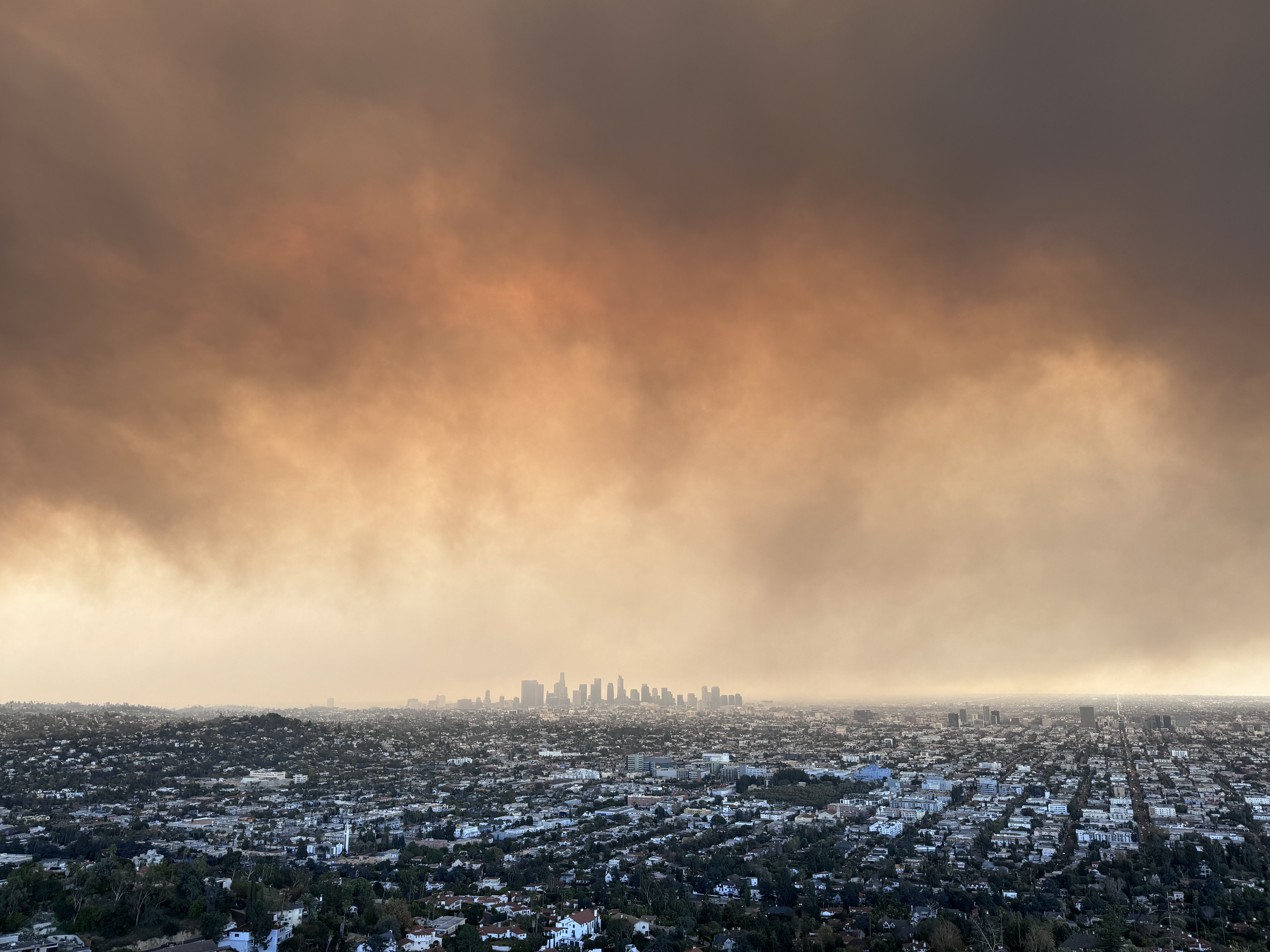 To the east, the effects of the Eaton fire were also visible.