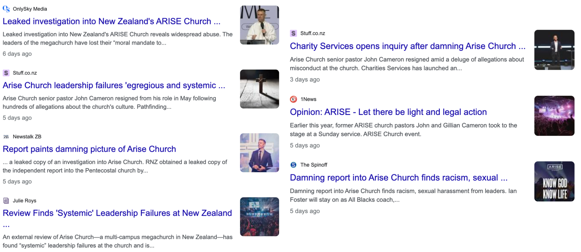 RNZ had the best story, succinctly summing up the very long review. Stuff had a very encouraging followup, reporting that Charity Services are opening an enquiry into Arise. Good.