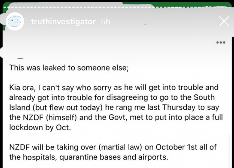 They’ve empowered all the influencers who are currently sharing this “leaked” tip that the New Zealand Defence Force is going to put New Zealand into full lockdown on October 1st:
