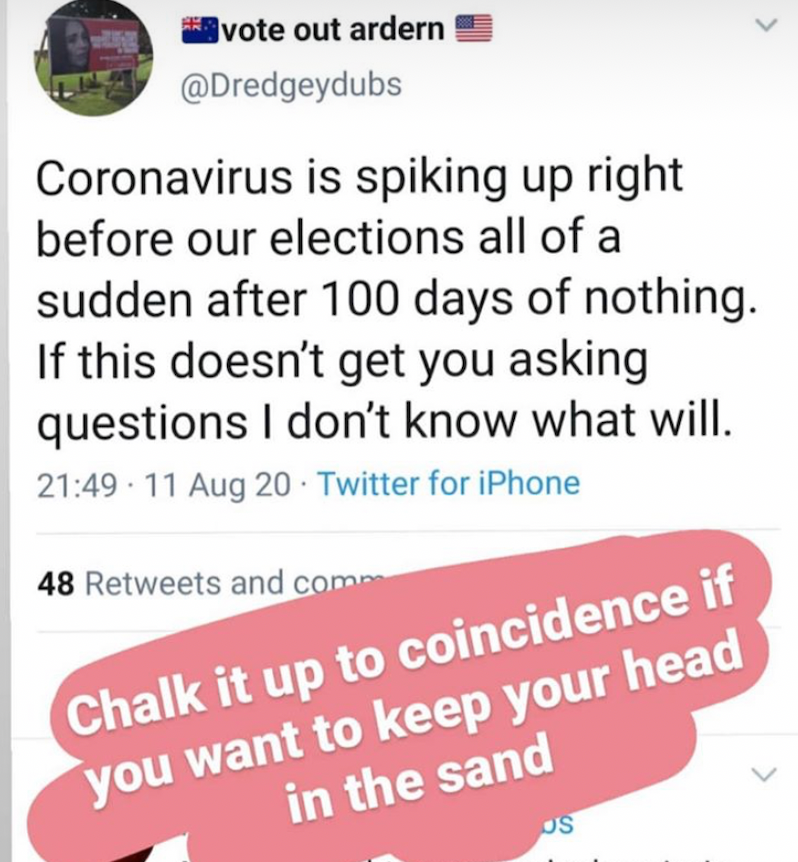 What a time to be alive: I am watching both mommy bloggers, influencers and the deputy leader of the National Party go full Conspiracy Mode.