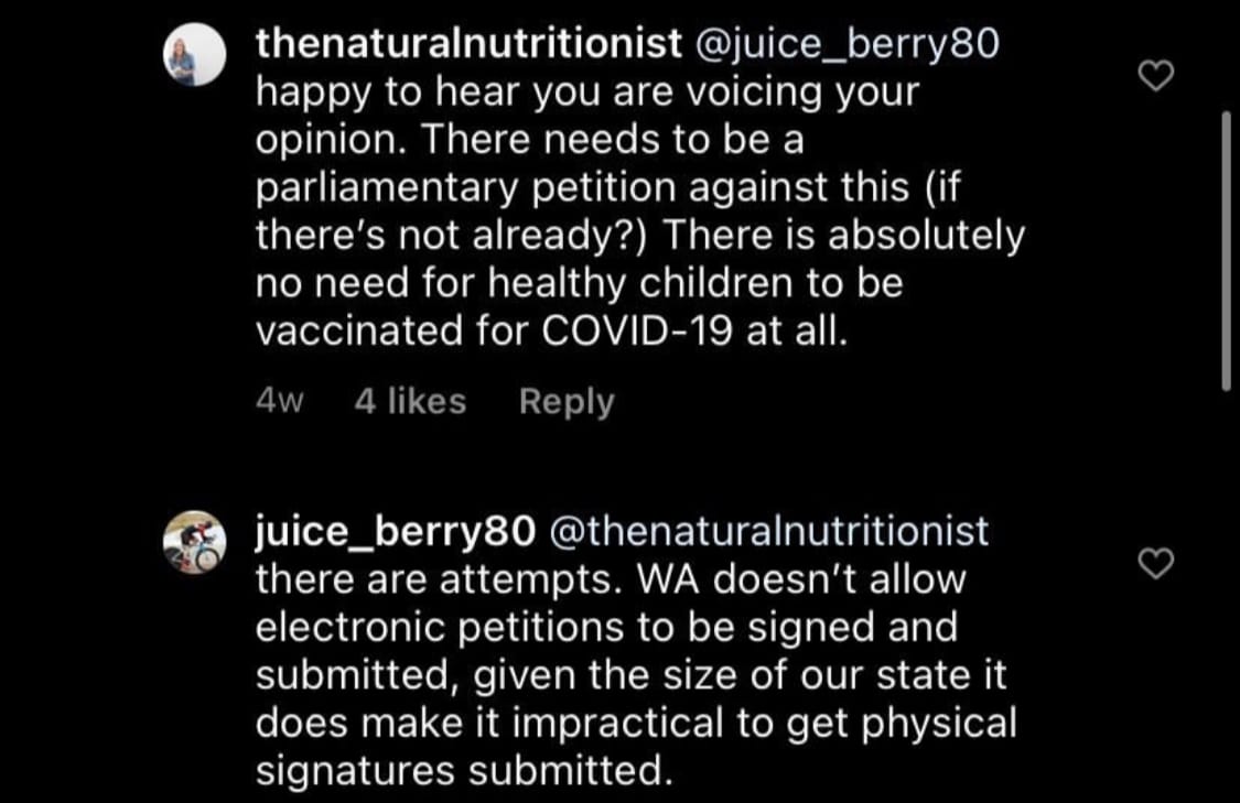 Especially the COVID-19 vaccine. They were just asking questions, of course. The discussion continued with other wellness types and mommy bloggers in the comments section.