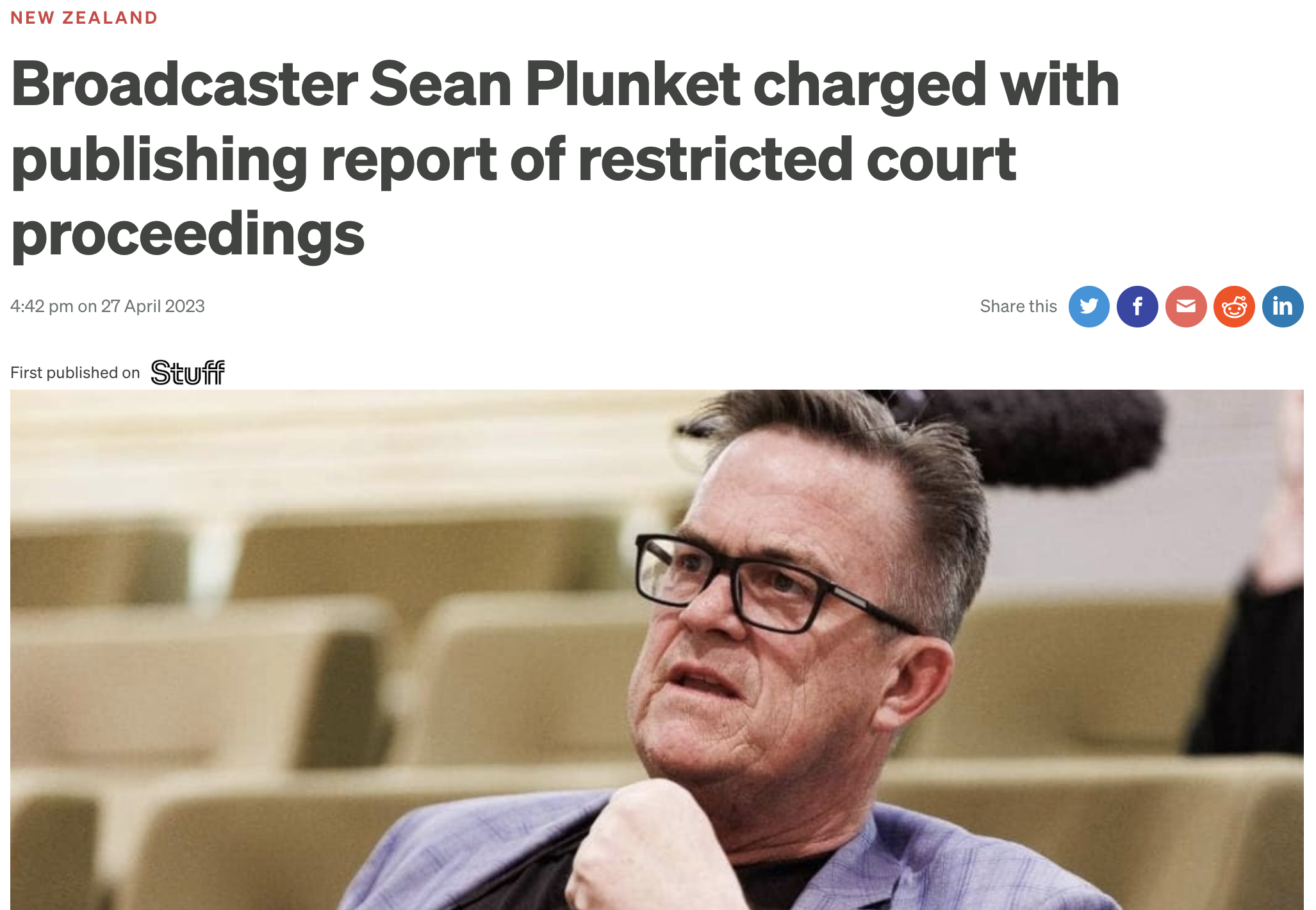 "Sean Plunket has been charged with publishing identifiable Family Court documents without the leave of the court" reported The Herald.