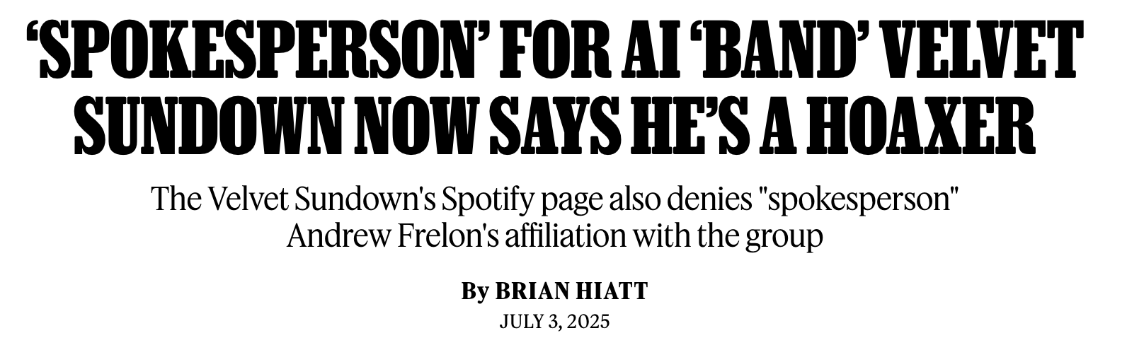 If you missed it, last month a band called “Velvet Sundown” appeared on Spotify, quickly amassing nearly a million monthly listens.
